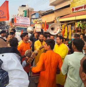 स्वामी श्री निश्चलानंद सरस्वती जी के आगमन के पूर्व आदित्य वाहिनी द्वारा निकाली गई आमंत्रण रैली।