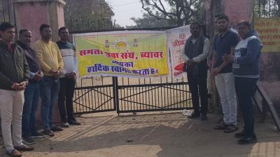 श्री विनय विद्या मंदिर में 150 छात्र छात्राओं को गणवेश, बेल्ट, शूज वितरण, 11 पैर कटे दिव्यांगों को जयपुर पैर वितरण।